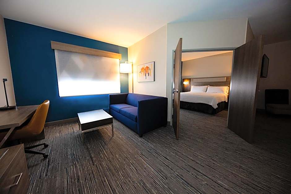 A separate living area with a flat-screen TV is offered in this room. A coffee machine, microwave, and refrigerator are included.